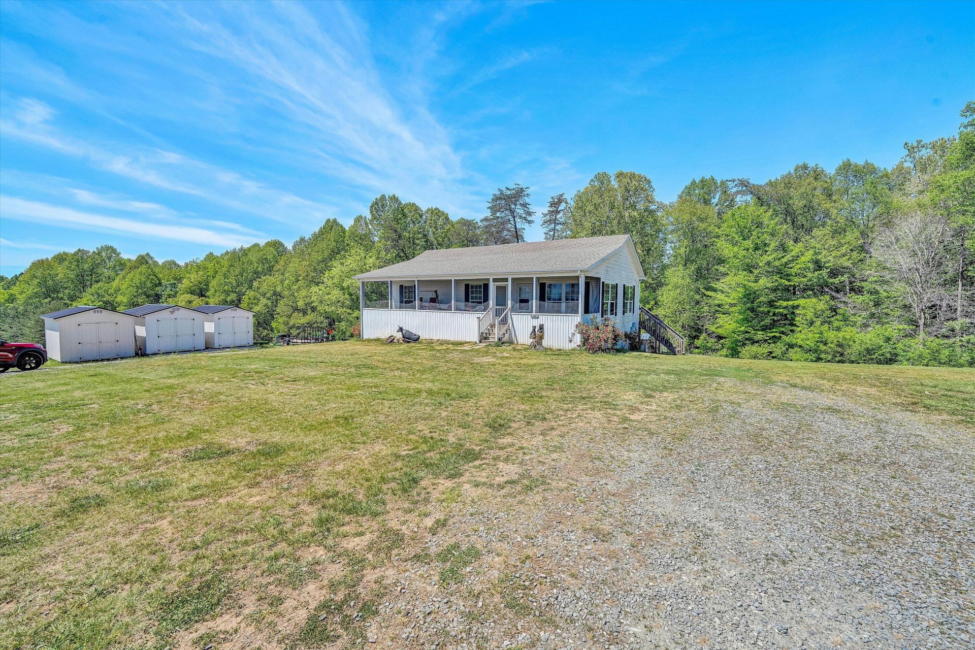 *PRICED TO SELL QUICKLY!* Seller Relocating, Bring Offers! Enjoy Main Level Living in this Spacious 3Bed/3Bath Home nestled on Rural 6.22 acre Setting! Kitchen Opens to Family Rm, Tons of Natural Light throughout. Finished Lower Level includes Large Den, Kitchen #2, Office, Walk-In Closet & Storage space. Covered Front Porch & Rear Deck: Perfect for Outdoor Entertaining! (3)Sheds convey, Plenty of Gardening space & Usable Yard! Needs TLC, Sold ''as-is''