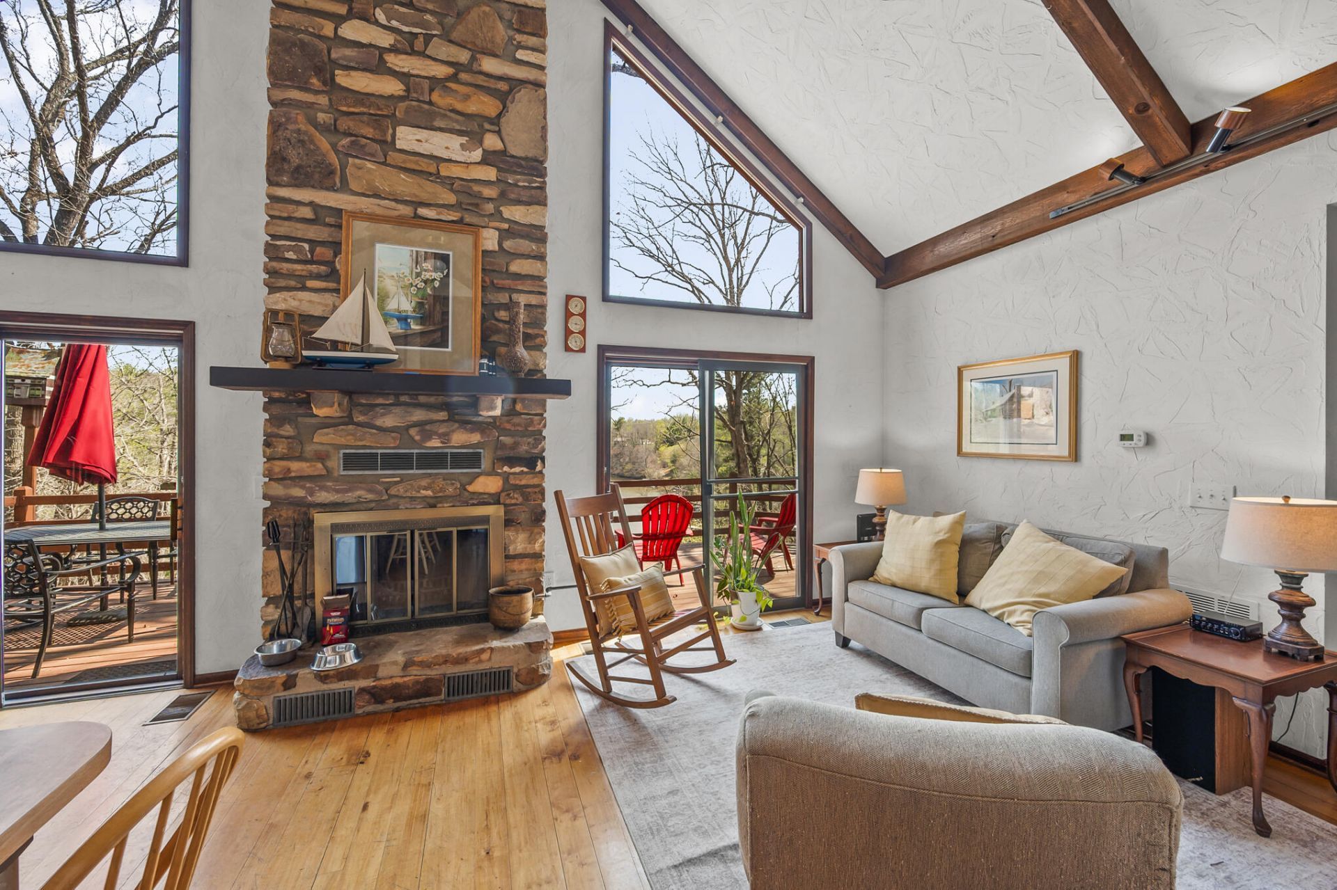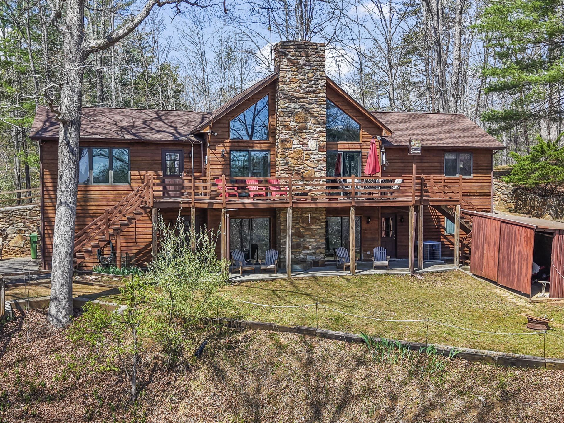 Dive into the ultimate lake lifestyle in this vibrant 5 bedroom retreat! Nestled on a quiet cul-de-sac with 3 acres & 525' of shoreline, this stone & wood masterpiece is framed by mature trees & lush landscaping. Inside, soaring cathedral ceilings and a lofted great room w/ masonry fp offer epic lake and mountain vistas. The open-concept kitchen and formal living room are made for hosting. The layout features 3 entry-level bedrooms (including a large primary suite), a loft bedroom, and a lower-level suite with a rec room and 2nd fp. Outside, enjoy the expansive deck, covered patios, or massive private dock with a lift and floater. Complete with a garage, carport, and community boat launch, this home is convenient to Smith Mountain Lake amenities and just 30 mins to Downtown Roanoke.