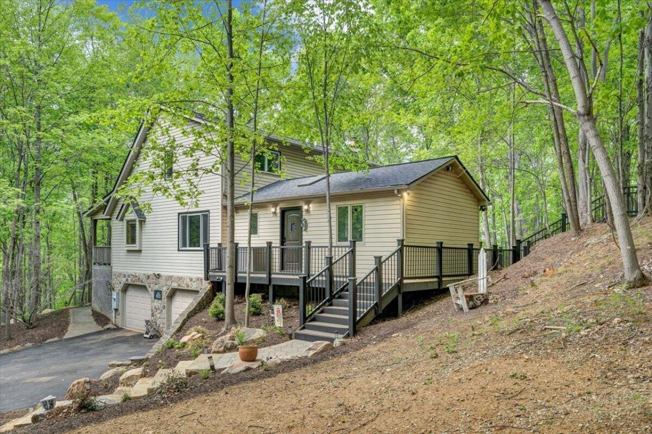 Privacy meets convenience in desirable Wedgewood Estates. Nestled on a secluded 5-acre wooded lot just minutes from Roanoke, Offering the perfect balance of peaceful living & easy access to town. Soaring cathedral ceilings in the living room, a spacious kitchen and a high-end, fully renovated primary bathroom designed with comfort in mind. The second updated full bath with exterior access to the patio. An entry-level office provides flexibility and can easily serve as a fourth bedroom. Extensive recent improvements, including a new paved driveway, roof, and skylights (within the past three years), new HVAC units, updated appliances, new interior doors upstairs, and two new exterior doors. Enjoy outdoor living with new hardscaping and low-maintenance Trex decking.