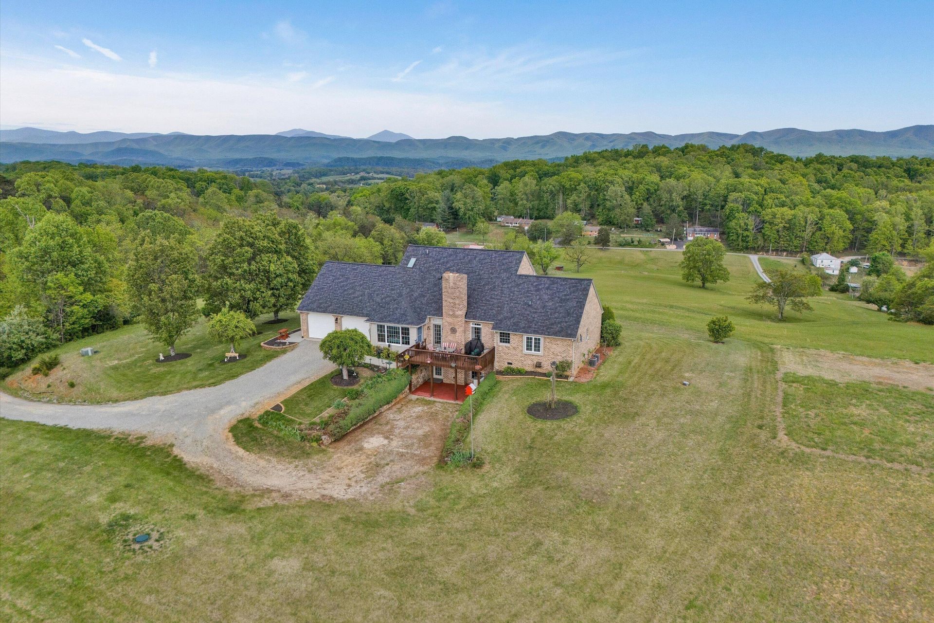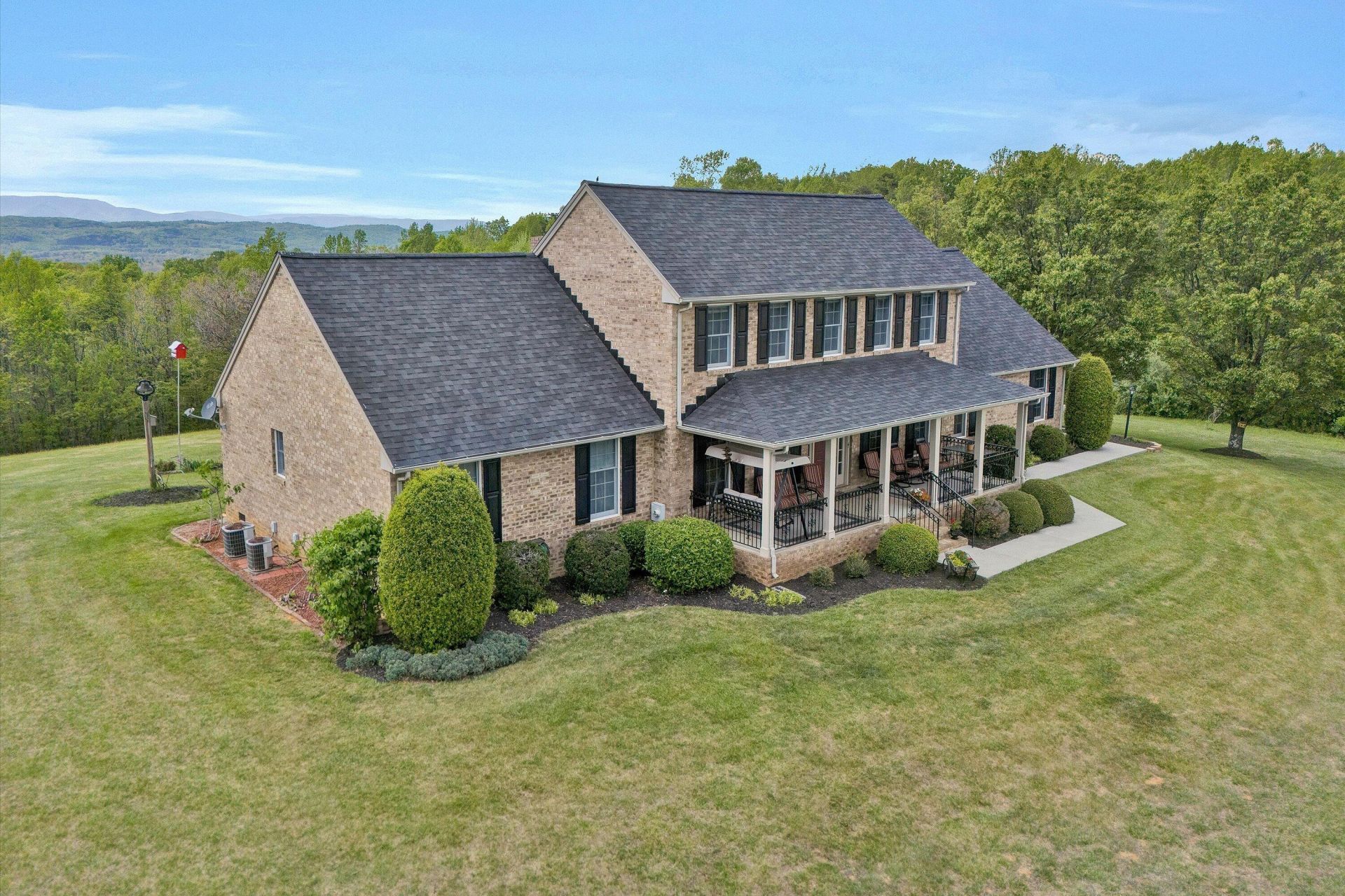 Set high above it all on 52 Acres of picturesque farmland, this exceptional property offers breathtaking panoramic mountain views. Whether you're enjoying sunrise or sunset, the scenery from both the front and rear of the home is simply unforgettable. This custom-built home is designed for comfortable main-level living. Recent updates include architectural roof 2 years old. Inside, you will find a stunning formal living and dining room, along with a spacious great room featuring a beautiful fireplace-perfect for gathering and entertaining. The kitchen is a standout with abundance of cherry cabinetry a pantry and opens to a bright breakfast area surrounded by windows to capture those incredible views. The oversized primary suite provides a private retreat with a large ensuite bath and